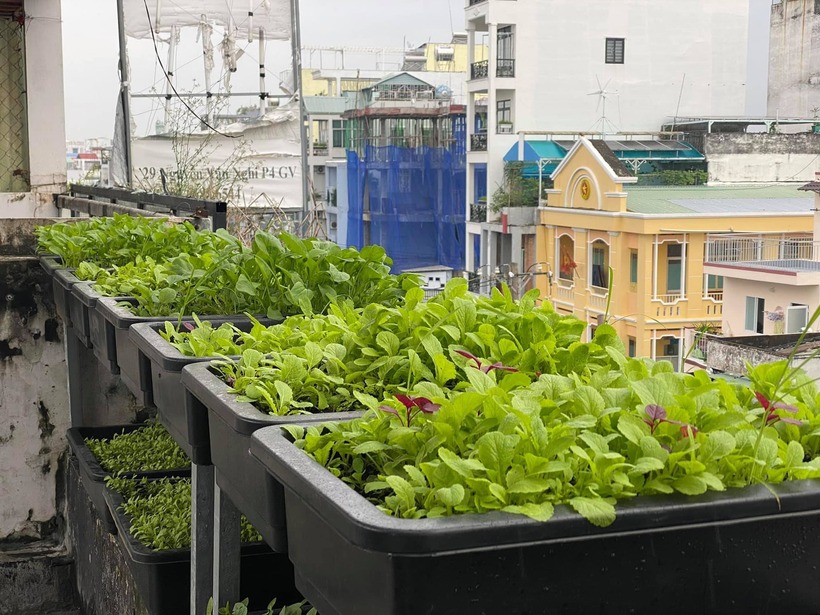 Dù làm vườn trên cao có ưu điểm hạn chế được sâu bệnh, nhưng anh Tâm lưu ý rằng người trồng cần phải cực kỳ kiên nhẫn trong khâu ươm cây con và kiểm tra nguồn nước thường xuyên để tránh tình trạng cây bị úng hoặc khô rễ dưới cái nắng gay gắt.