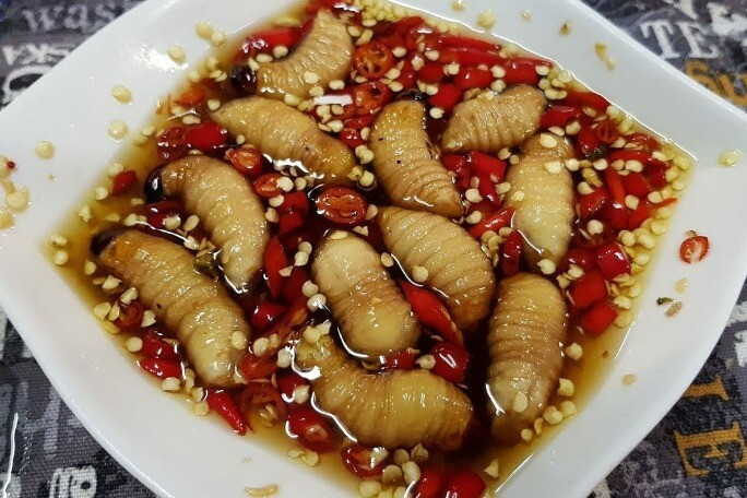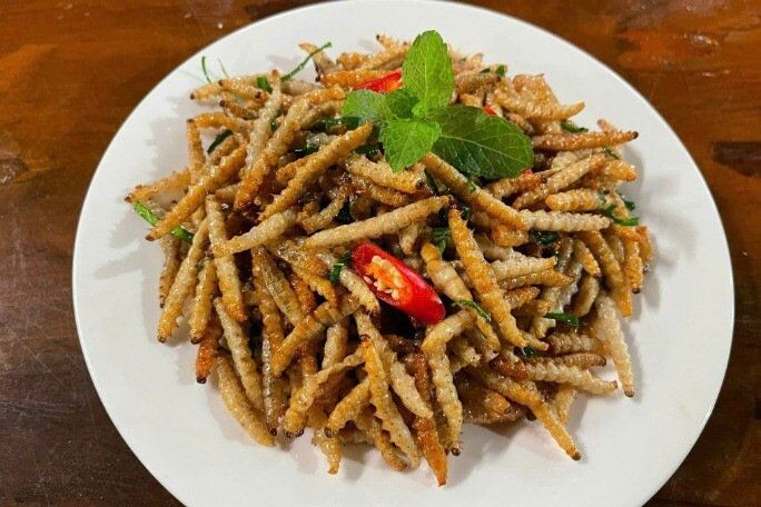 Nhộng tằm rang lá chanh
